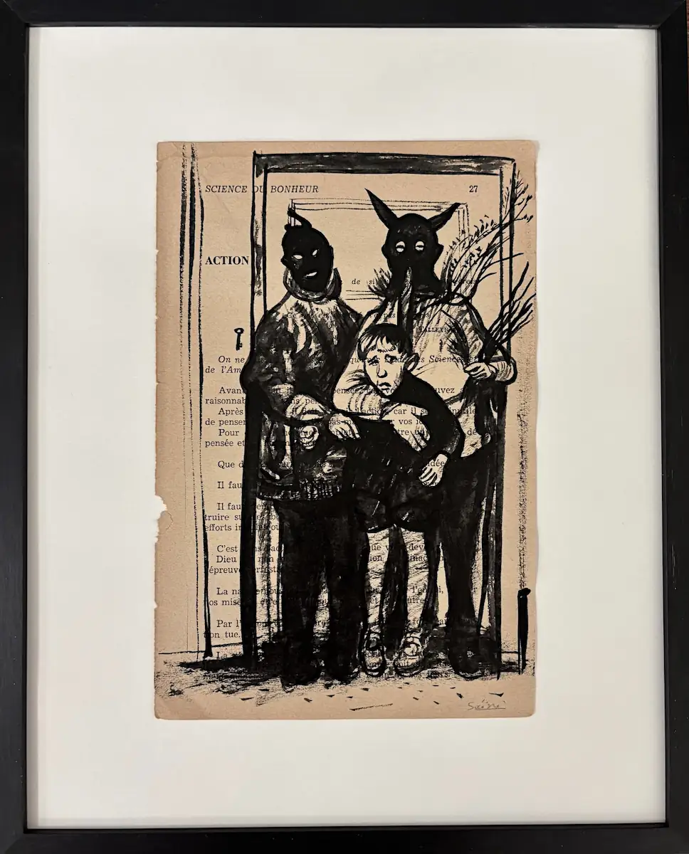 L’œuvre, à la fois narrative et symbolique, évoque les rites de passage, les terreurs enfantines, les figures d’autorité ou de protection ambiguës. Elle puise dans l’imaginaire du conte, du folklore (on pense à Krampus, au Père Fouettard…), mais aussi dans une mémoire intime.