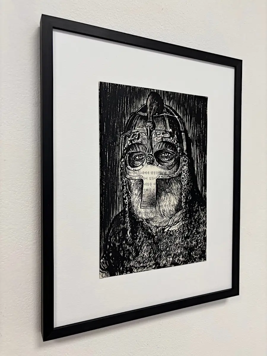 Mais cette saga s’inscrit ici sur une page de texte imrpimé en coréen, étrange support pour cette icône nordique.